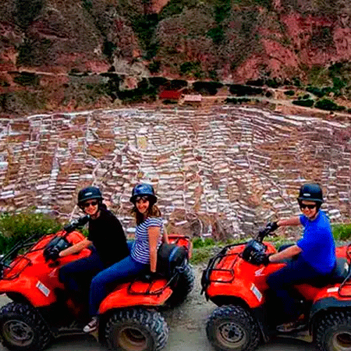Una vez que estemos listos, emprenderemos el recorrido en las cuatrimotos hacia las terrazas experimentales de Moray, donde nuestro guía nos proporcionará información sobre la importancia de este sitio arqueológico. Después de visitar Moray, regresaremos a la base para abordar el transporte turístico y nos dirigiremos hacia las Salineras de Maras, un lugar de increíble belleza donde se produce sal de forma artesanal. Durante este trayecto, disfrutaremos de magníficas vistas de los nevados Verónica y Chicón, junto con un paisaje mágico en contacto con la naturaleza. En las Salineras, el guía nos explicará el proceso natural de producción de la sal.